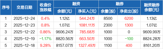 标榜股份:连续5日融资净买入累计4402.02万元(12-24)