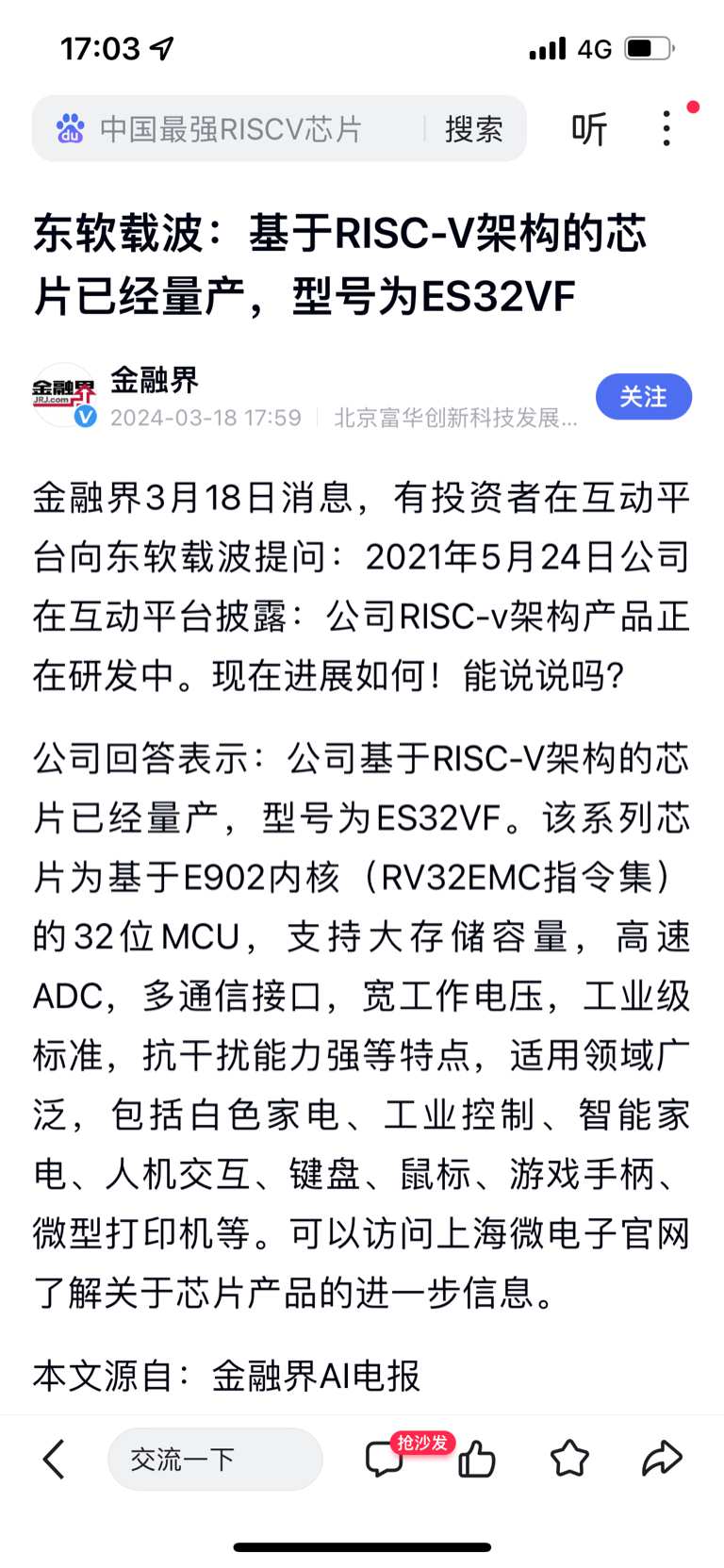 $凯旺科技(SZ301182)$ 关注~东软载波~2.28号阿里将发布引用DS新出来的玄铁RISC-V最新应用~一旦成功直接吊打英伟达芯片~热度可能比DS刚出来的产业链强度更强更重磅~周末阿里玄铁RISC-V芯片肯定会重磅发酵。