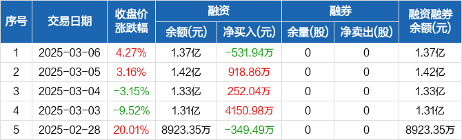 凯旺科技:融资净偿还531.94万元,融资余额1.37亿元(03-06)
