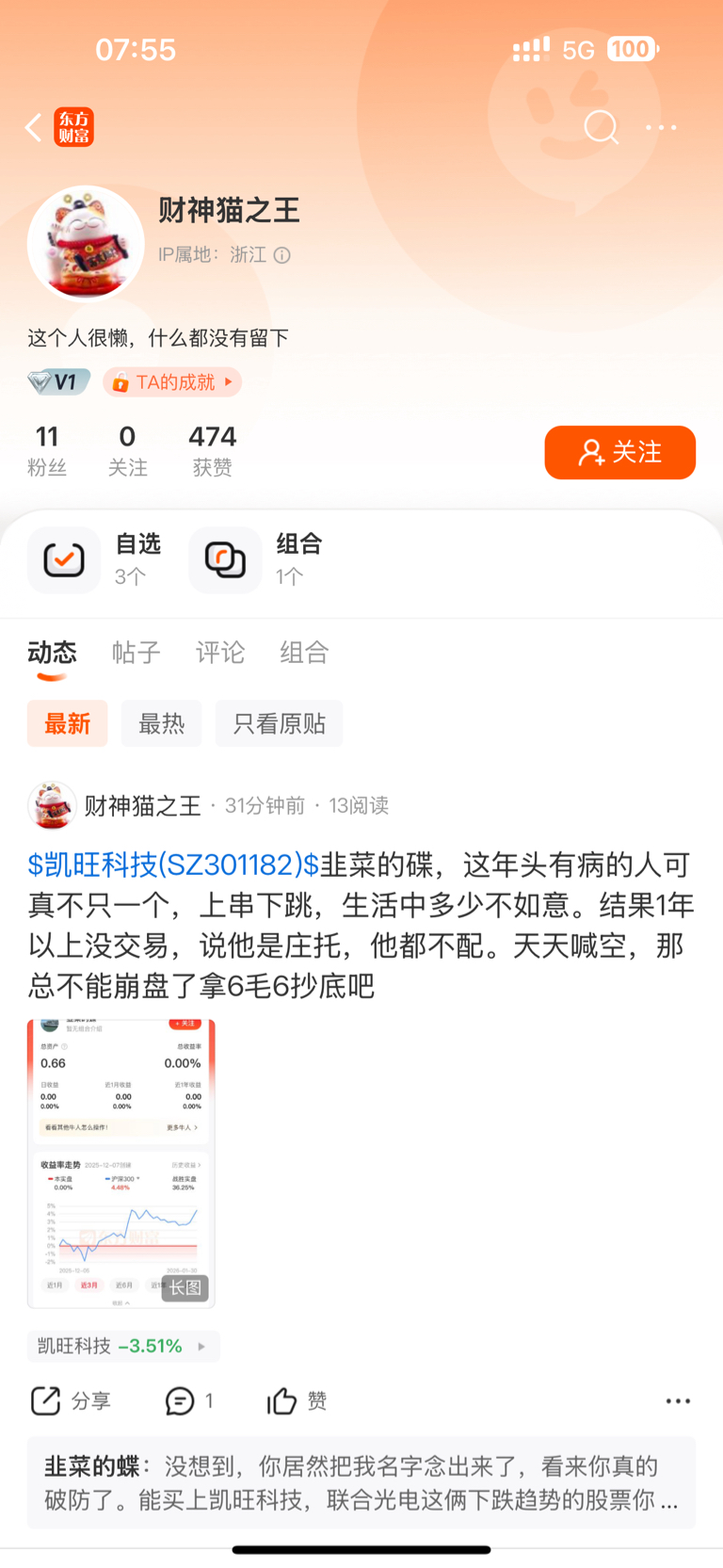 $凯旺科技(SZ301182)$ 选错股就是选错股,挨打就要立正,死不承认,苦苦挣扎,永远套牢在里面,早日换股还有重获新生的机会。所以说,有些人真的凭实力亏钱,怪不得人家说有些人亏钱是命中注定,亏钱配的上自己的认知。
