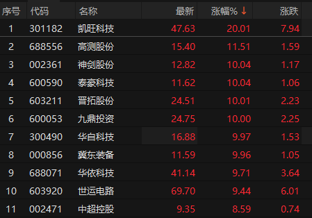 上证报中国证券网讯 2月3日午后,机器人概念股震荡走强,截至13时12分,凯旺科技20cm涨停,晋拓股份涨停,高测股份涨超10%,华自科技、华依科技等跟涨。神剑股份、泰豪科技等此前封板。