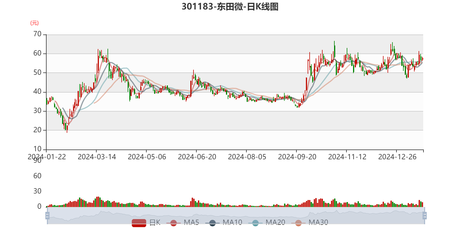 中证智能财讯东田微(301183)1月20日晚间披露2024年度业绩预告,预计2024年归母净利润5500万元至6200万元,上年同期亏损3263.96万元;扣非净利润预计5300万元至6000万元,上年同期亏损3661.62万元。以1月20日收盘价计算,东田微目前市盈率(TTM)约为74.34倍-83.8倍,市净率(LF)约5.49倍,市销率(TTM)约8.51倍。