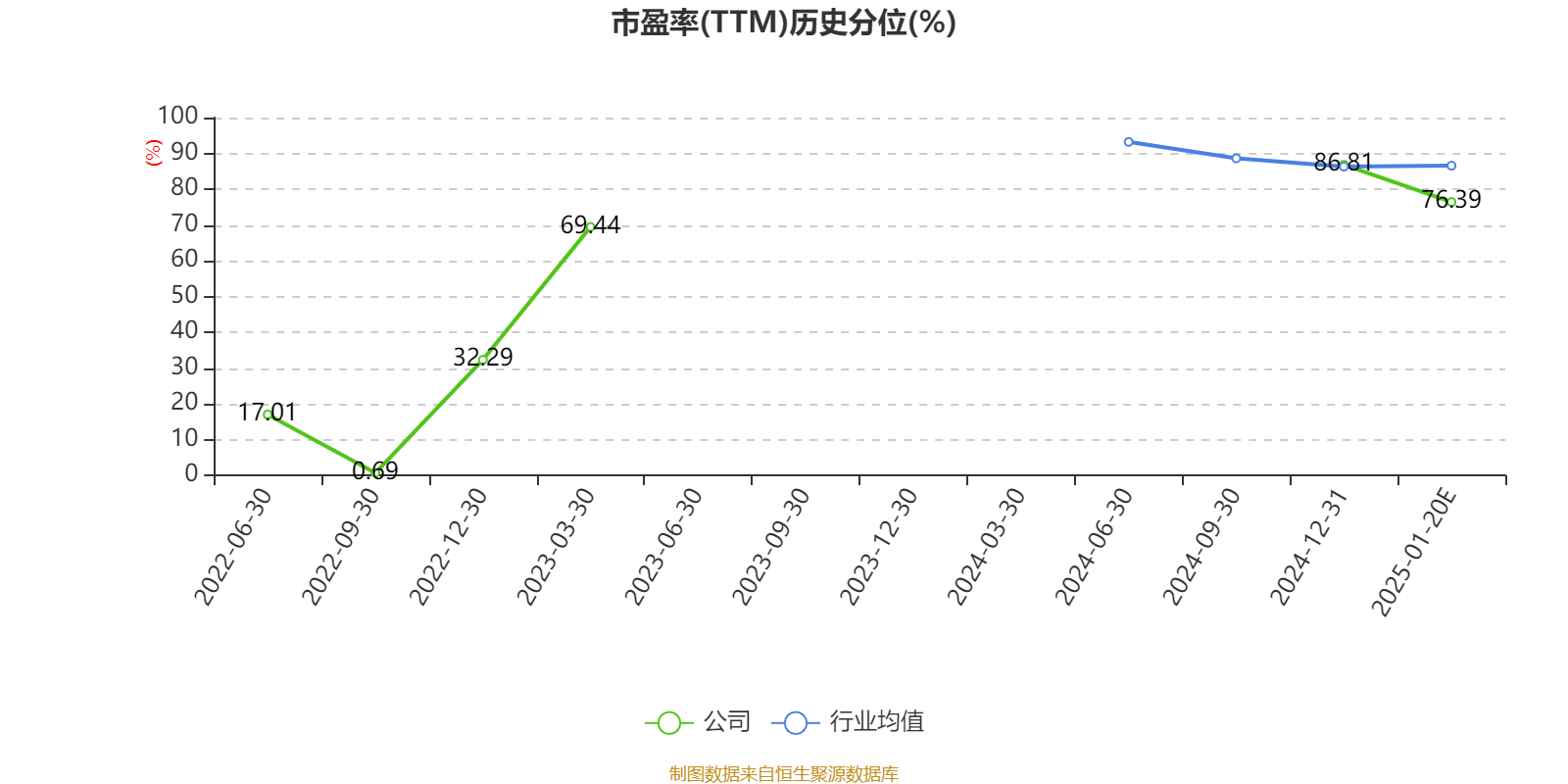 市盈率、市净率为负时,不显示当期分位数,会导致折线图中断。