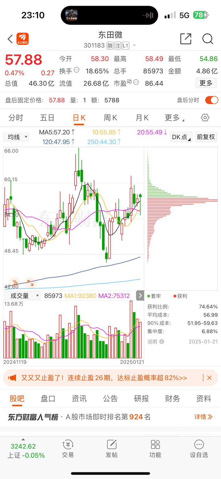 筹码峰集中度到了6.88%,很久了没见这么低了。明天到底会怎么走?不做预判,拭目