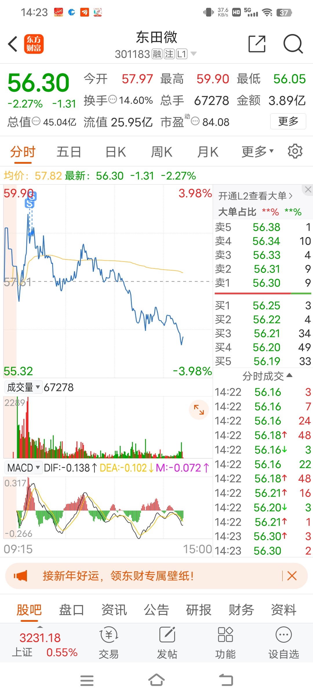 $东田微(SZ301183)$