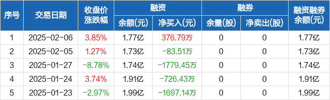 东田微:融资净买入376.79万元,融资余额1.77亿元(02-06)