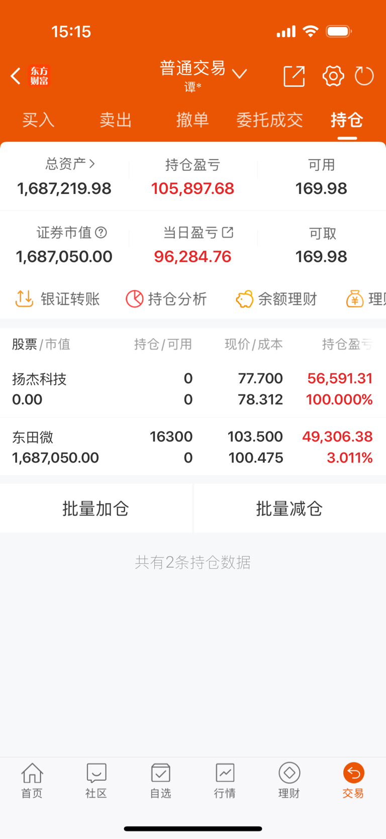 100万炒股的33天,今天的行情还不错呀,我相信大家都吃肉了吧,我的红了!祝点赞的朋友股票长虹!#炒股日记# $东田微(SZ301183)$ $扬杰科技(SZ300373)$