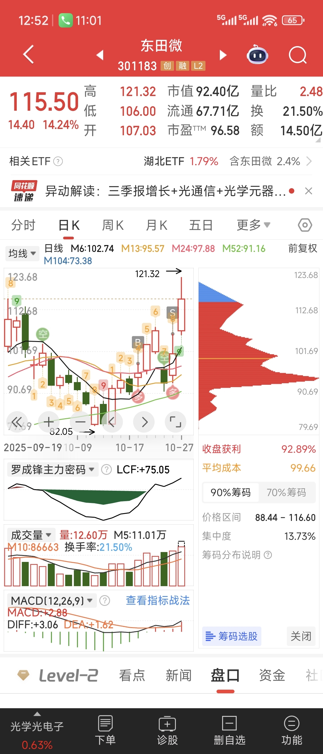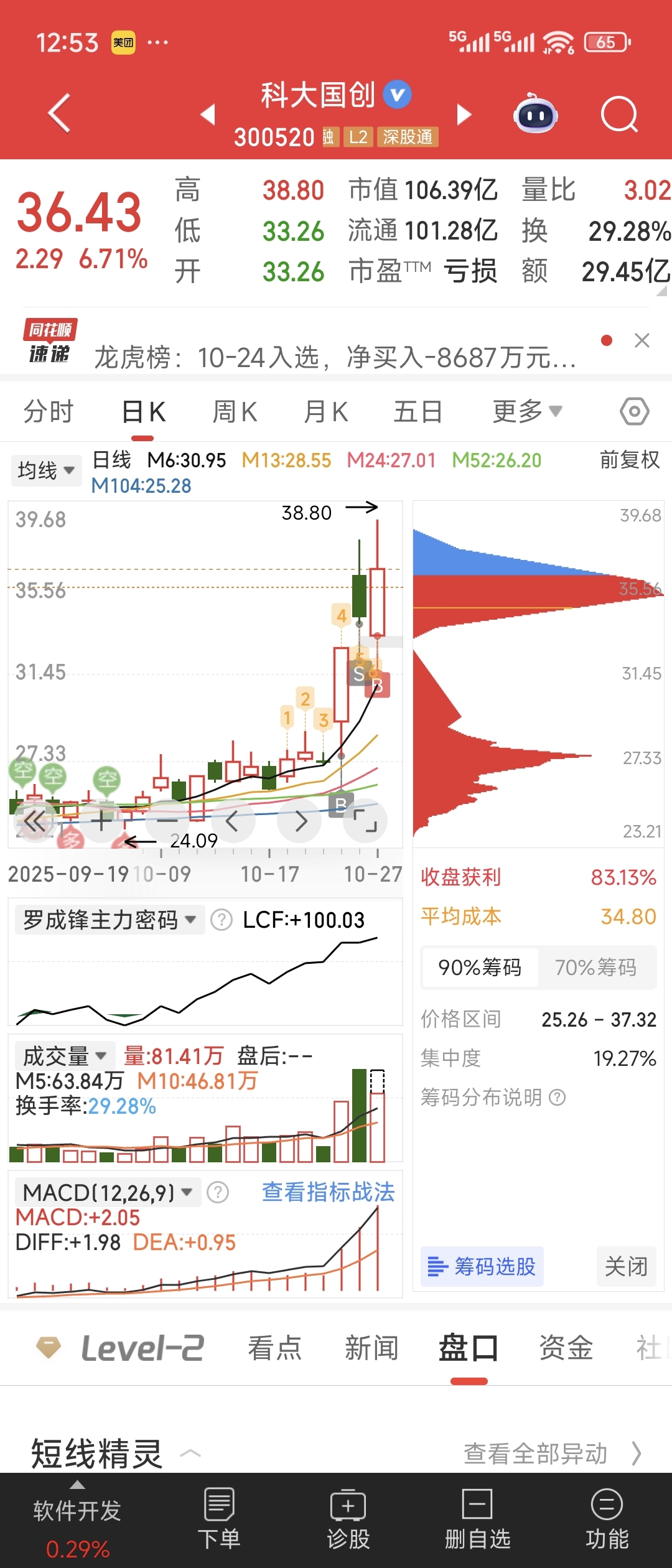了,周五因为忙,满仓清仓了科大国创,东田微。卖飞都是我常态。此月盈利37%。
