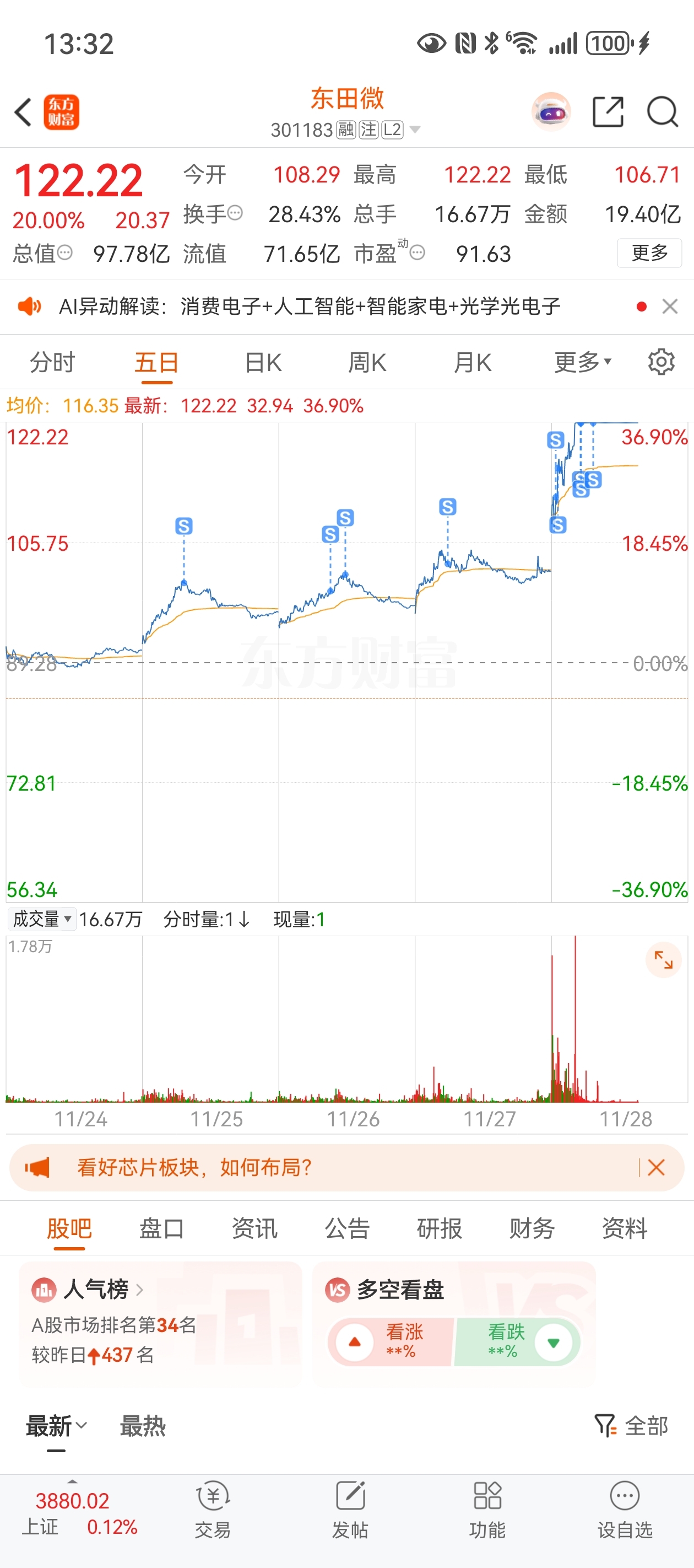 $东田微(SZ301183)$ 这一周天天卖。。。。卖飞了