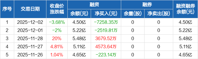 东田微:融资净偿还7258.35万元,融资余额4.5亿元(12-02)