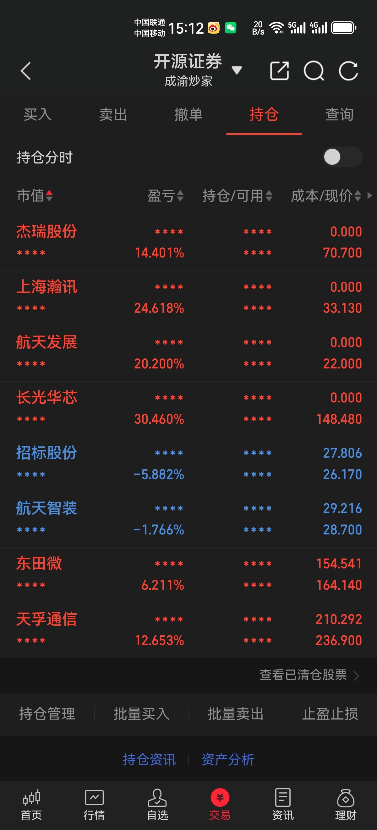 一:清仓上海瀚讯,杰瑞股份,航天发展,长光华芯