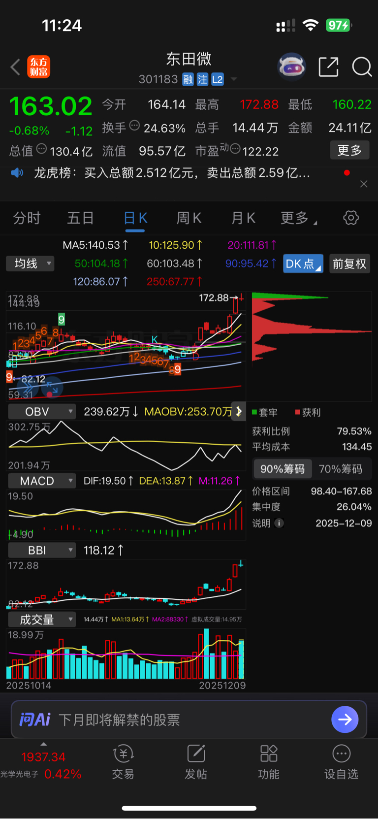 $东田微(SZ301183)$ 高位十字星,跌吧!