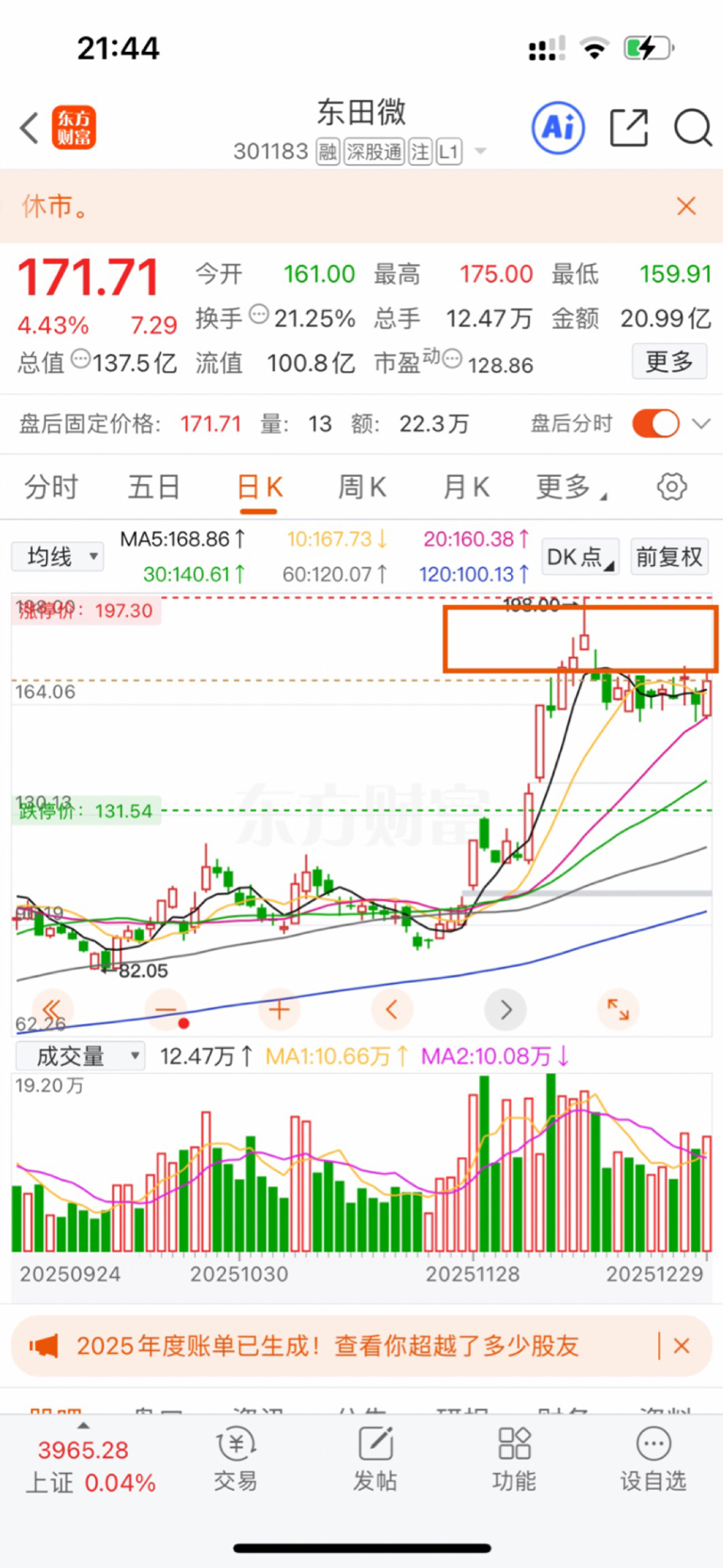 今天虽然涨,但其实不是很强,从几天持股来看,想突破前高今年不可能了,可能还需要一段时间,所以我今天选择是全部卖出清仓了。