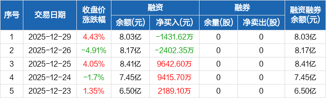 东田微:融资净偿还1431.62万元,融资余额8.03亿元(12-29)