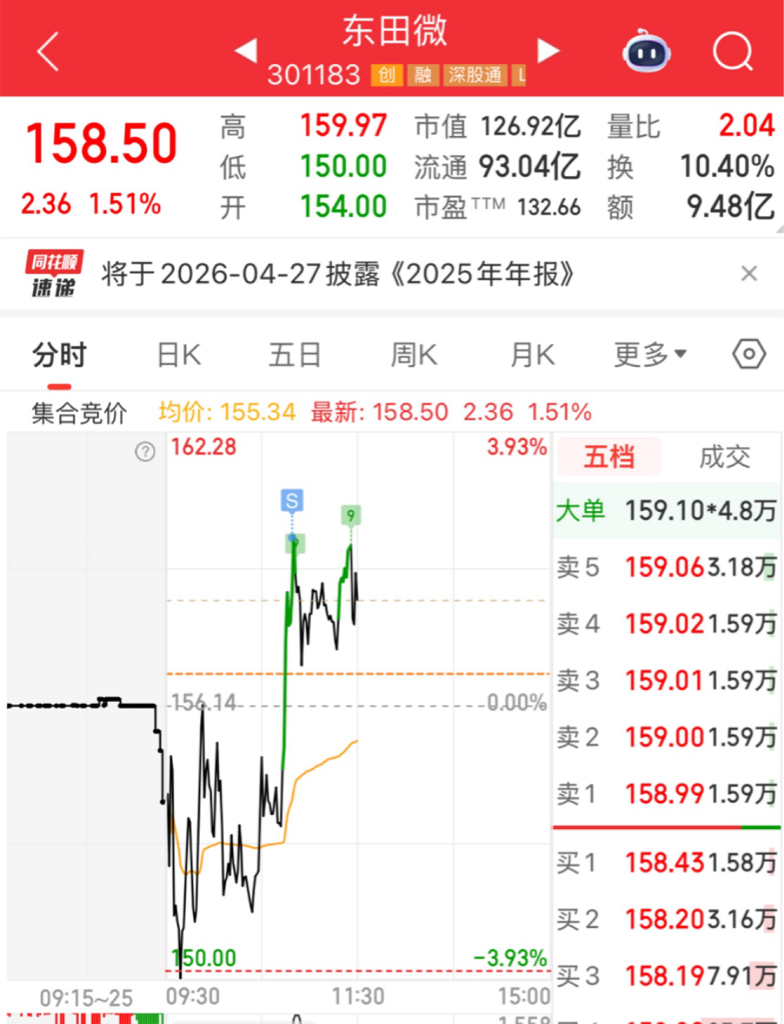 $东田微(SZ301183)$ 可惜了早上没买到!!!今天暂时脱坑了