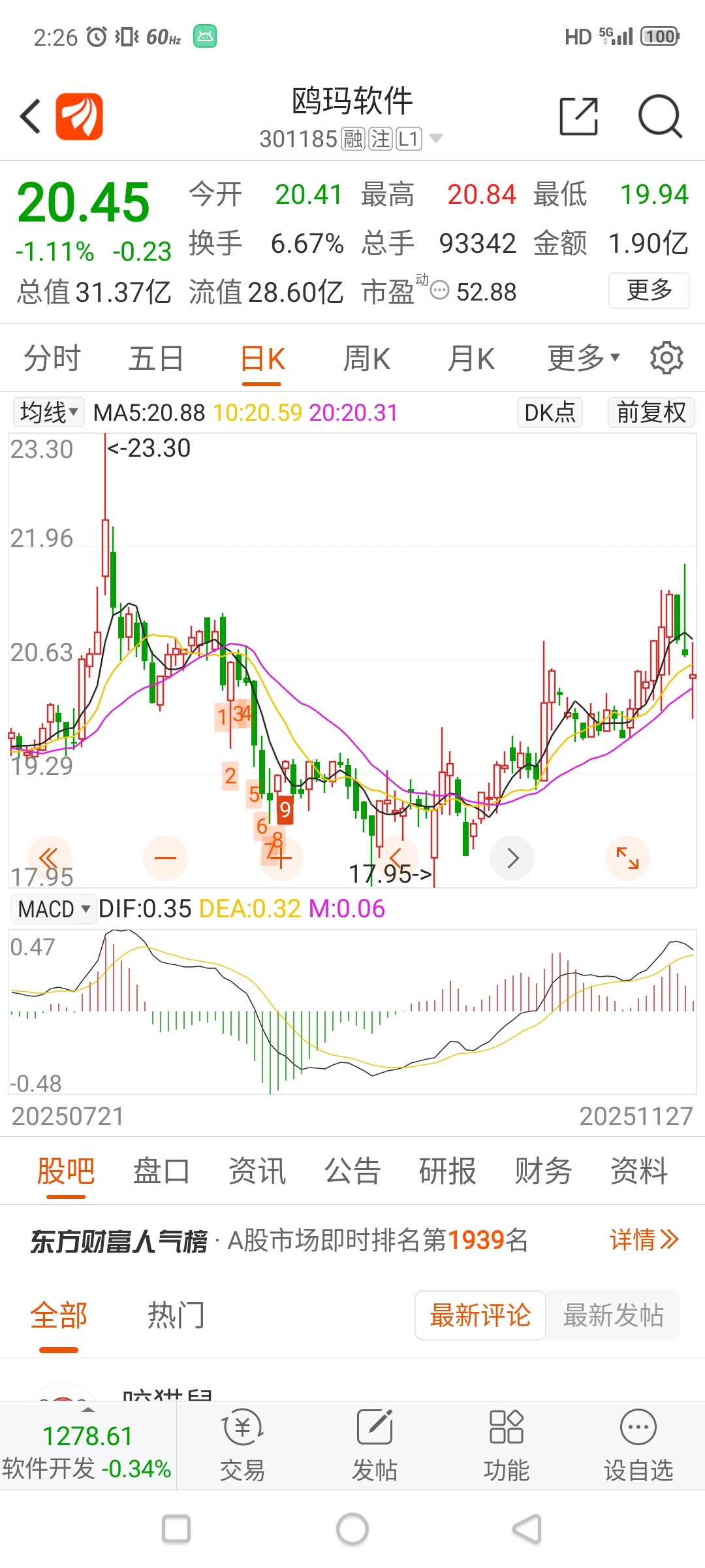$鸥玛软件(SZ301185)$ MACD死叉要调整了