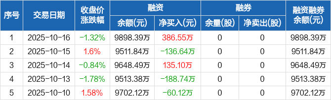 超达装备:融资净买入386.55万元,融资余额9898.39万元(10-16)