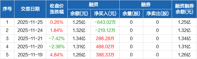 超达装备:融资净偿还643.02万元,融资余额1.25亿元(11-25)
