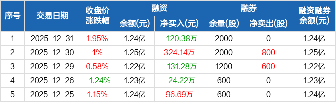 超达装备:融资净偿还120.38万元,融资余额1.24亿元(12-31)