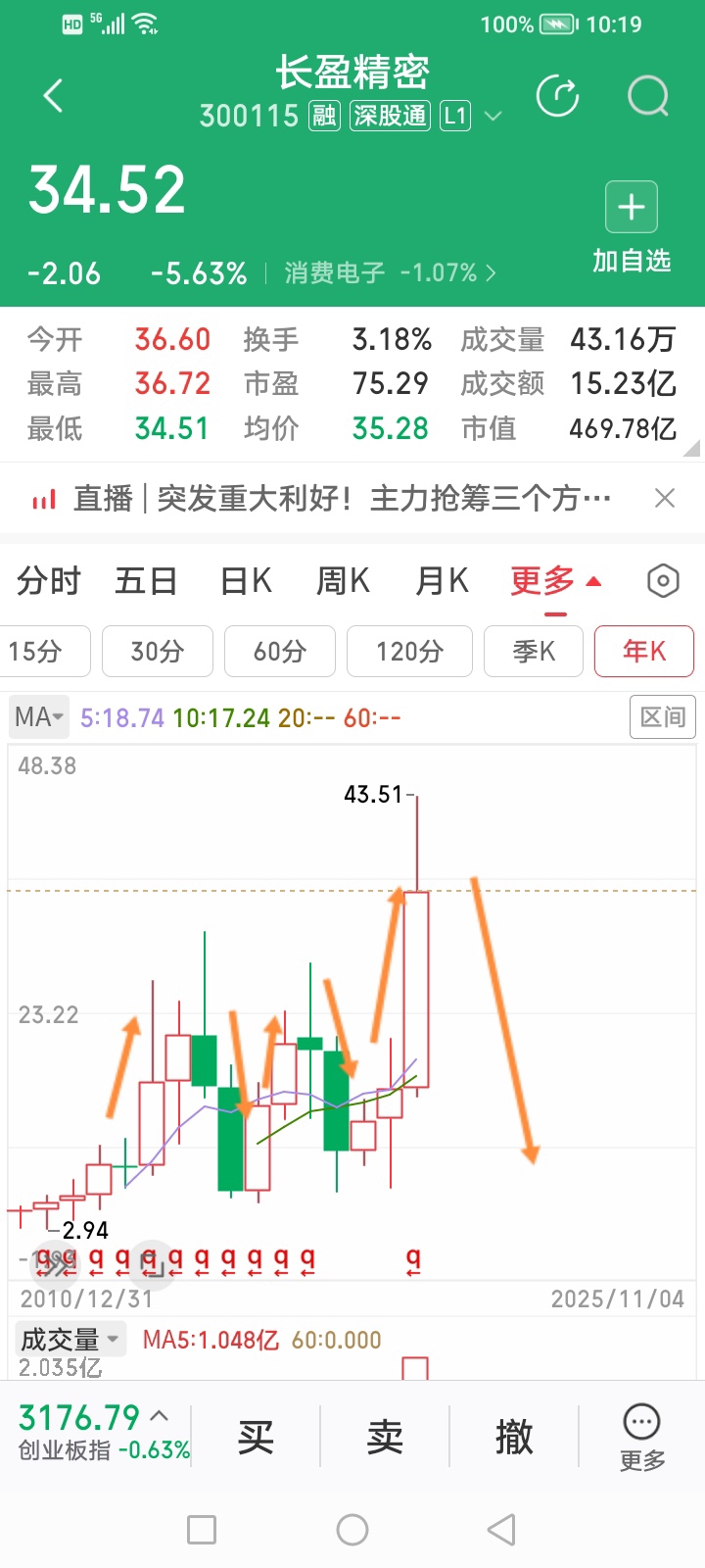涨和跌的时间和幅度一般是对称,长盈精密已经涨了三年,也已经走完主升浪,接下来,长