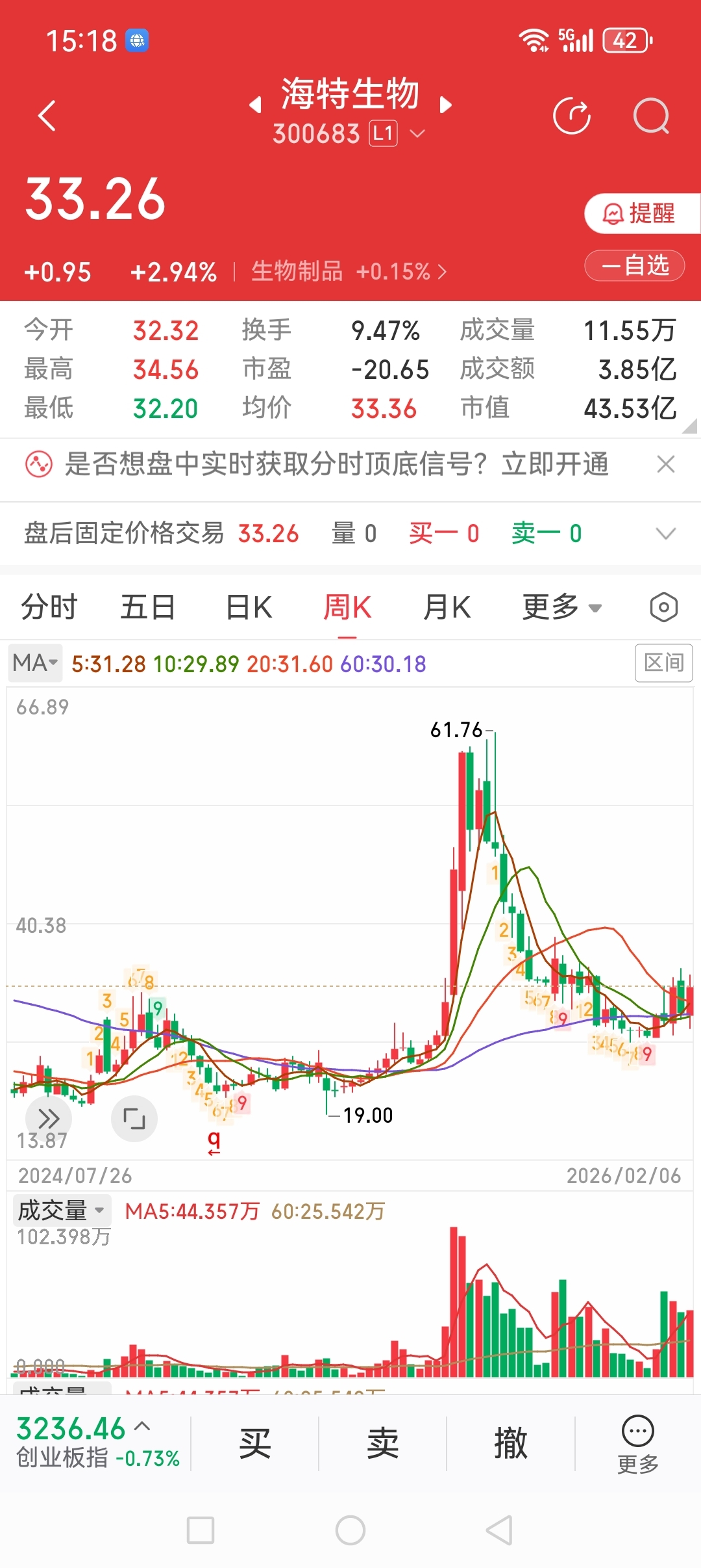 $力诺药包(SZ301188)$ 海特生物日线在低位第三次站在60天均线之上,周线两阳夹一阴,周线第二次站上20周线,预计5周线和10周线下周将金叉20周线。