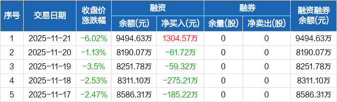 奥尼电子:融资净买入1304.57万元,融资余额9494.63万元(11-21)