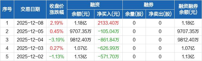 奥尼电子:融资净买入2133.4万元,融资余额1.18亿元(12-08)