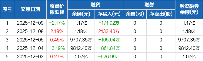 奥尼电子:融资净偿还171.92万元,融资余额1.17亿元(12-09)