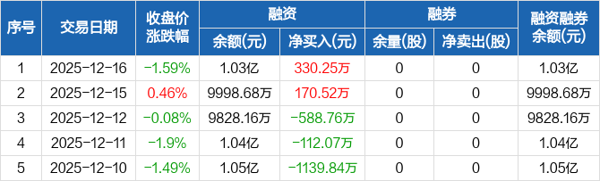 奥尼电子:融资净买入330.25万元,融资余额1.03亿元(12-16)
