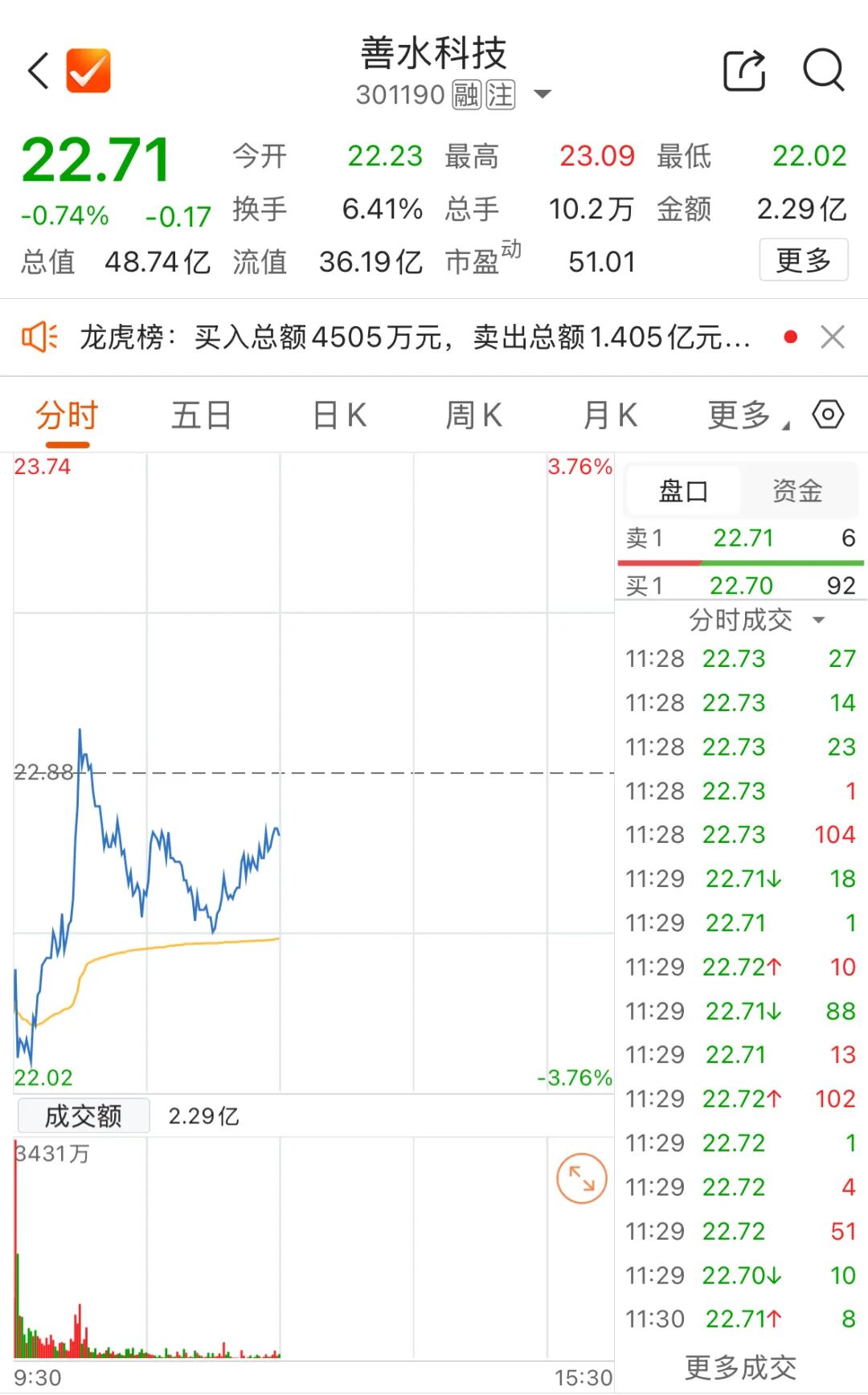 21日,善水科技开盘跳水后股价震荡,截至午间休市跌0.74%。