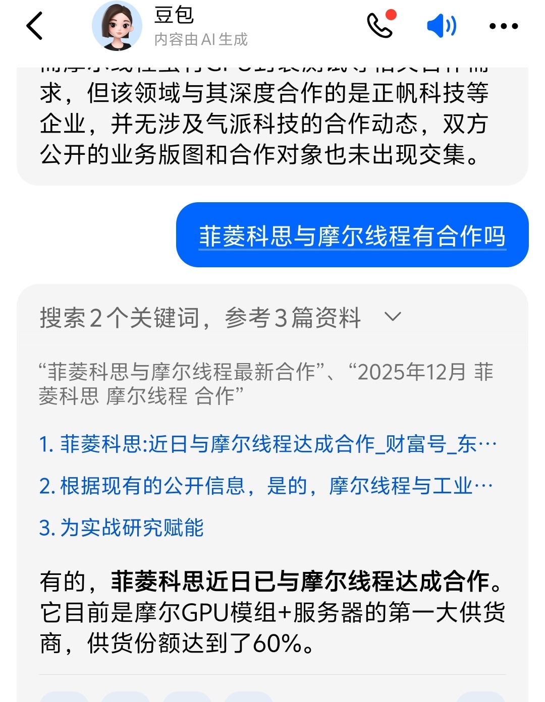 $菲菱科思(SZ301191)$ 所谓的合作,豆包读取的是股吧信息。。。。