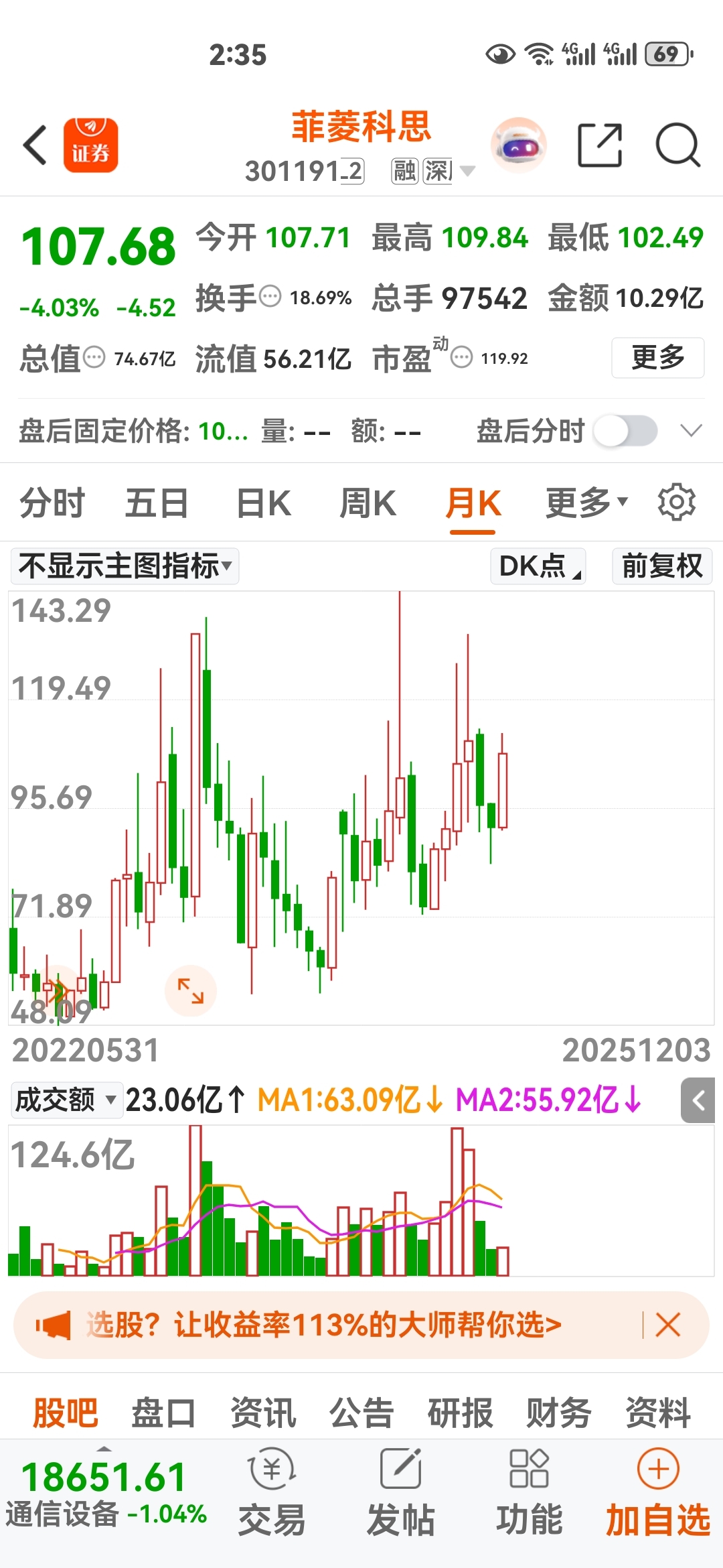 $菲菱科思(SZ301191)$ 看看月线大家就明白了,这个月必然要大涨了!$上证指数(SH000001)$
