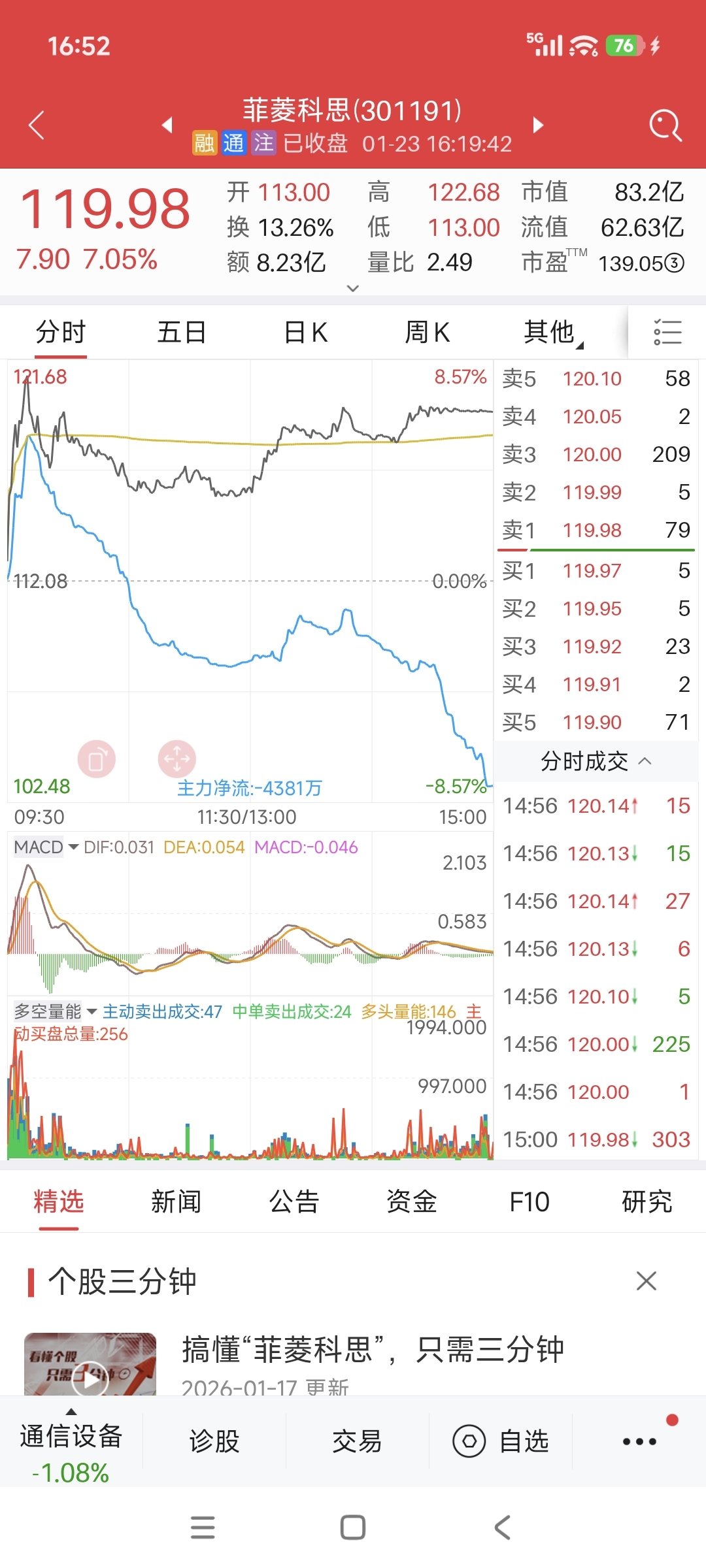 $菲菱科思(SZ301191)$ 主力大量流出,下星期大面等着散户