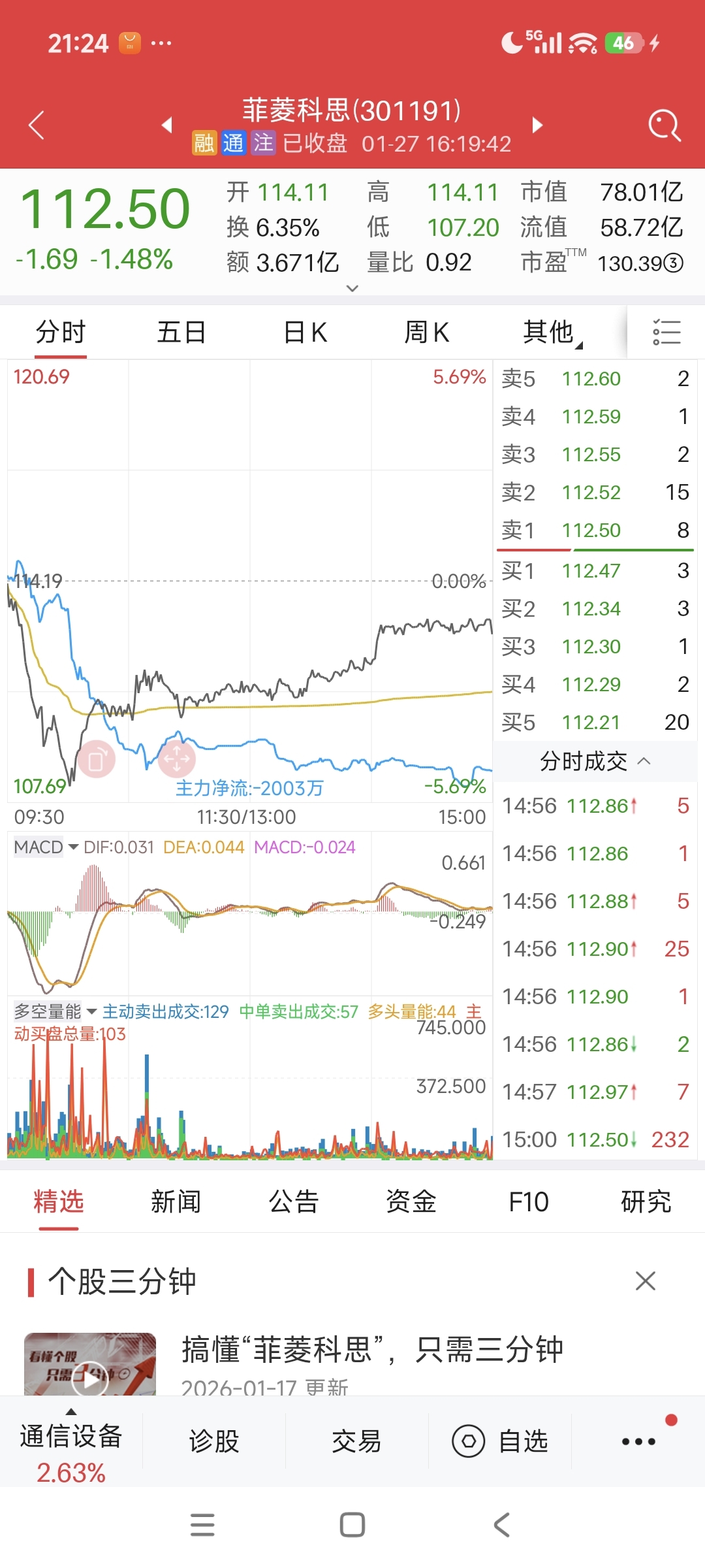$菲菱科思(SZ301191)$ 看图说话,明天主力继续砸
