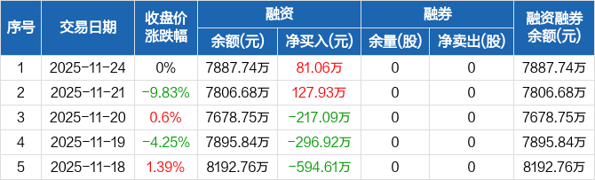 泰祥股份:融资净买入81.06万元,融资余额7887.74万元(11-24)