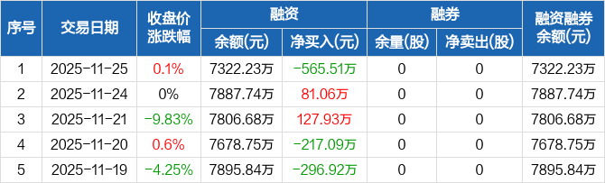 泰祥股份:融资净偿还565.51万元,融资余额7322.23万元(11-25)