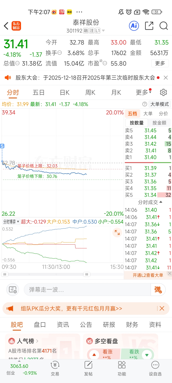 $泰祥股份(SZ301192)$ 还好32.99卖了