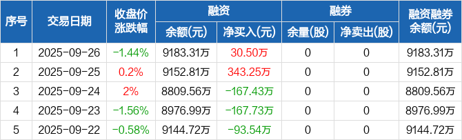 北路智控:融资净买入30.5万元,融资余额9183.31万元(09-26)