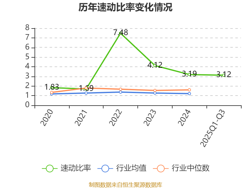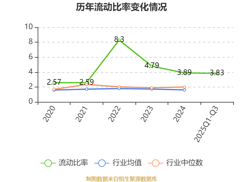 2025年前三季度,公司流动比率为3.83,速动比率为3.12。