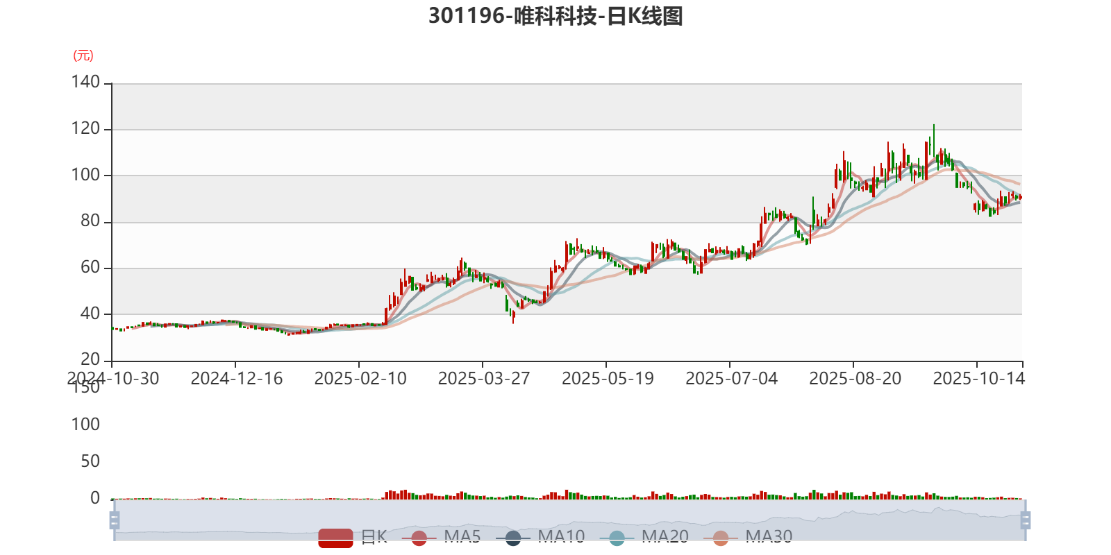 以10月29日收盘价计算,唯科科技目前市盈率(TTM)约为43.01倍,市净率(LF)约3.44倍,市销率(TTM)约5.28倍。
