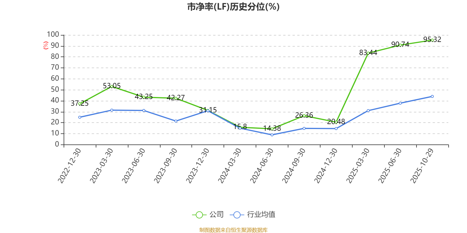 市盈率、市净率为负时,不显示当期分位数,会导致折线图中断。