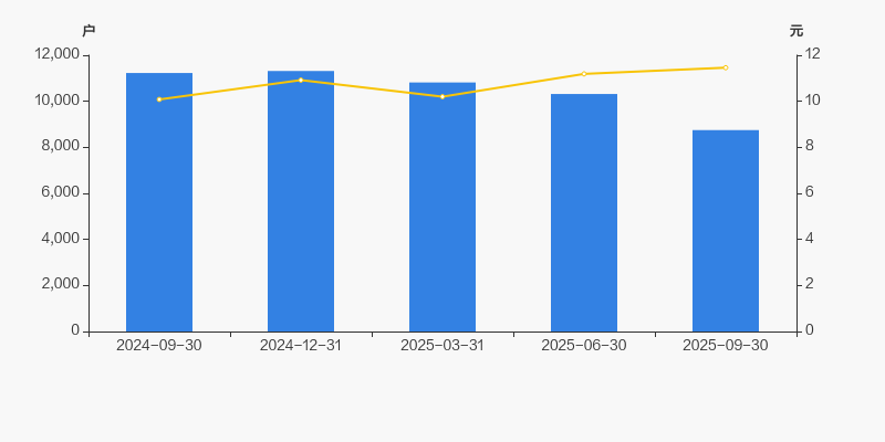 自2024年12月31日以来,公司股东户数连续3期下降,截至目前减幅为22.68%。2024年12月31日至2025年9月30日区间股价上涨4.95%。