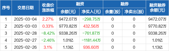 迈赫股份:融资净偿还298.75万元,融资余额9472.07万元(03-04)