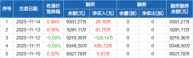 迈赫股份:融资净买入20.16万元,融资余额9301.27万元(11-14)