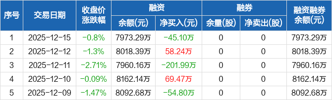 迈赫股份:融资净偿还45.1万元,融资余额7973.29万元(12-15)