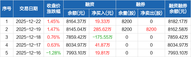 迈赫股份:融资净买入19.33万元,融资余额8164.37万元(12-22)