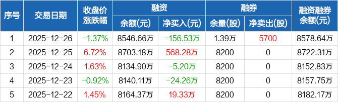 迈赫股份:融资净偿还156.53万元,融资余额8546.66万元(12-26)