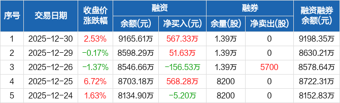 迈赫股份:融资净买入567.33万元,融资余额9165.61万元(12-30)