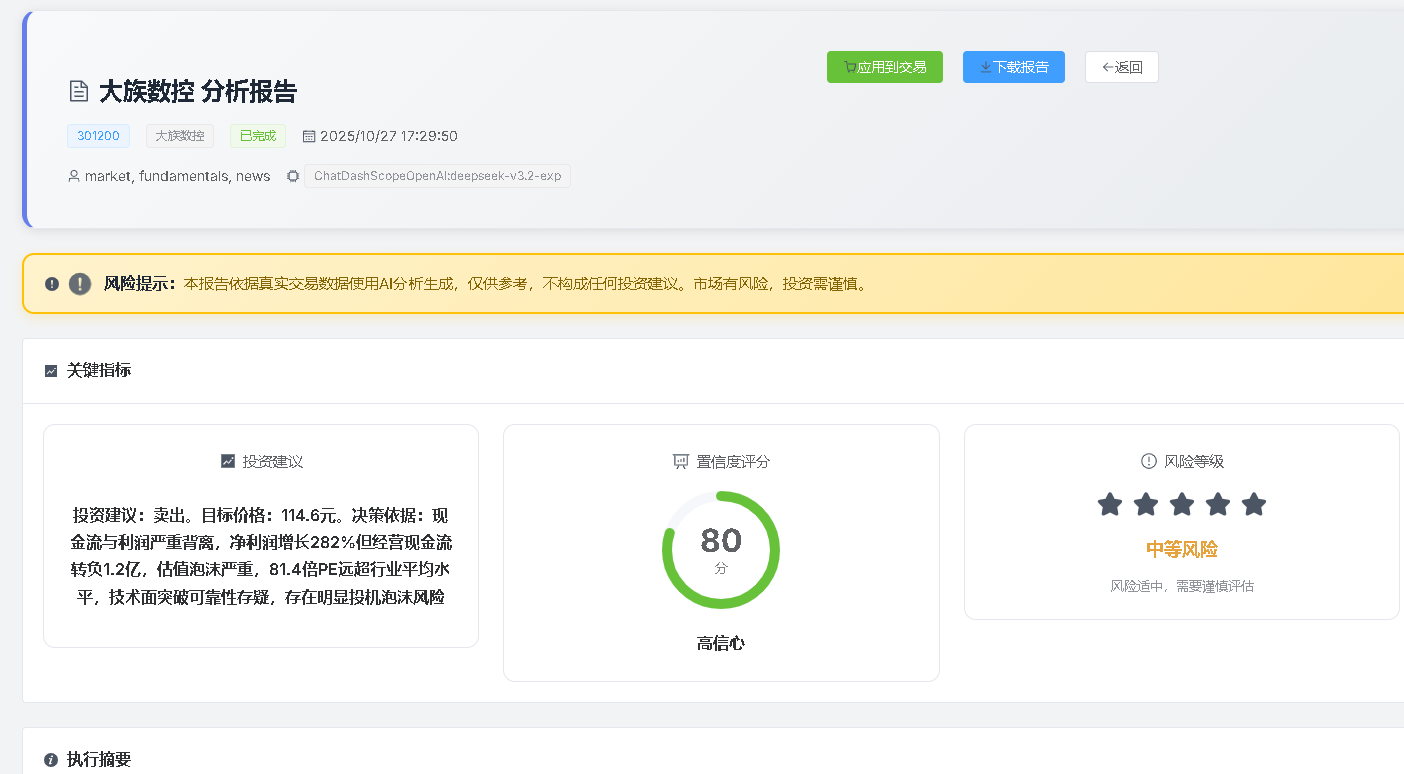 TradingAgents-CN + deepseek-v3.2-exp 分析结果