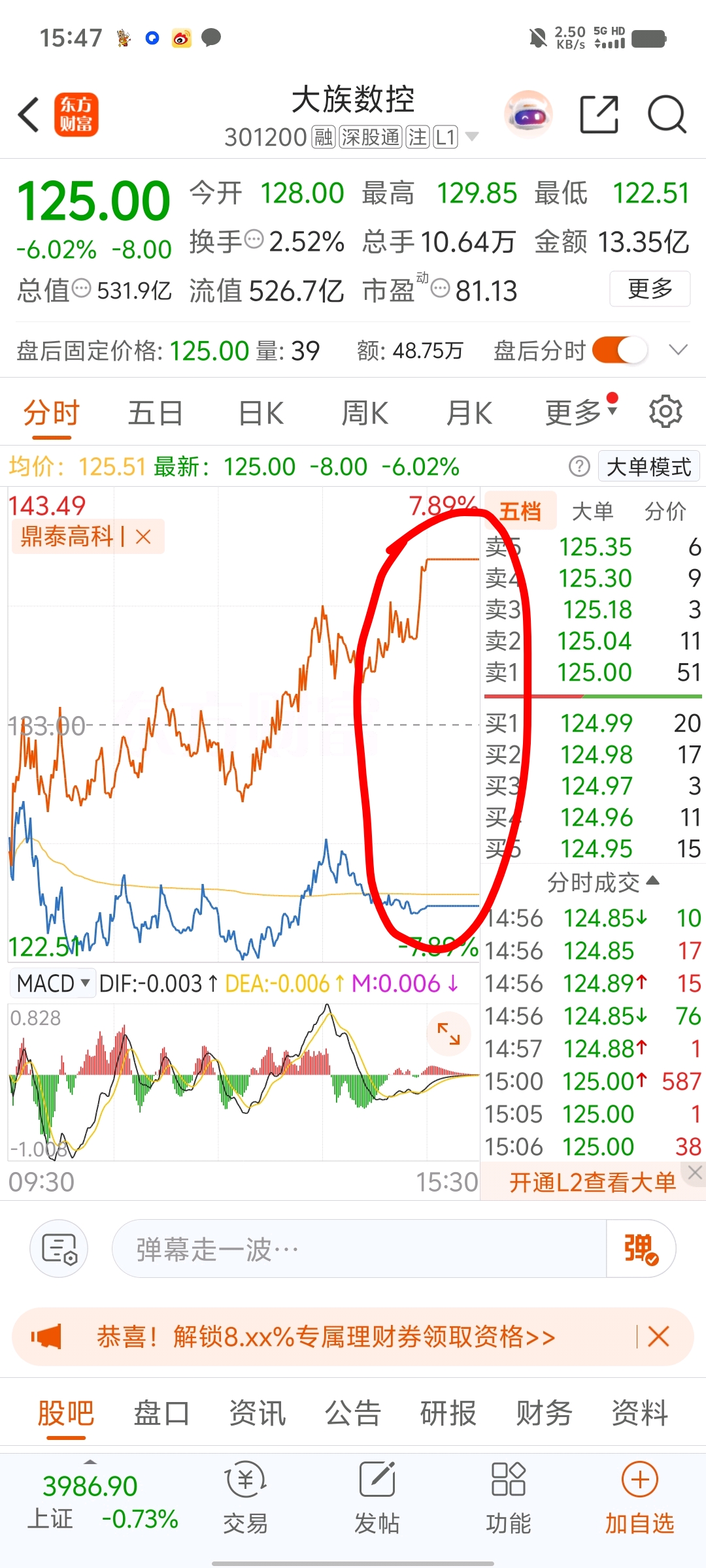 $大族数控(SZ301200)$ 尾盘压着不跟了是为啥